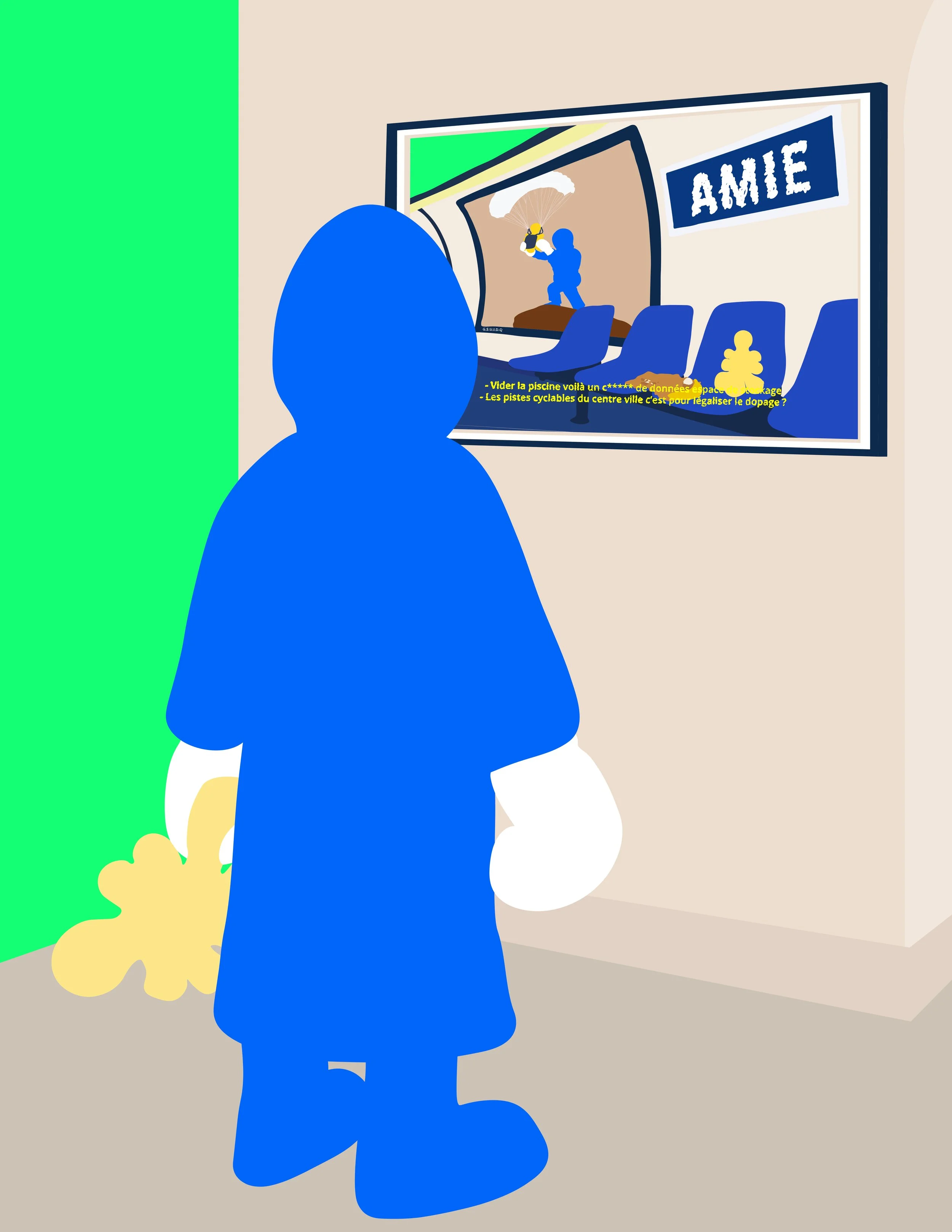 Through the concept of Neo-Doudou, AMIE investigates how comfort mutates into an interface of intimate surveillance and a tool for the commodification of emotions. The artist’s images result from a process of sampling childhood memories, cinematic fragments, and cultural icons, recomposed into freeze-frames that deliberately blur the boundary between screen and canvas. The viewer is first lured into a seductive aesthetic, yet through the recurring presence of subtitles as a signature device, is guided from tender absurdity toward lucid unease, ultimately unsettling the trust placed in images, language, and objects.